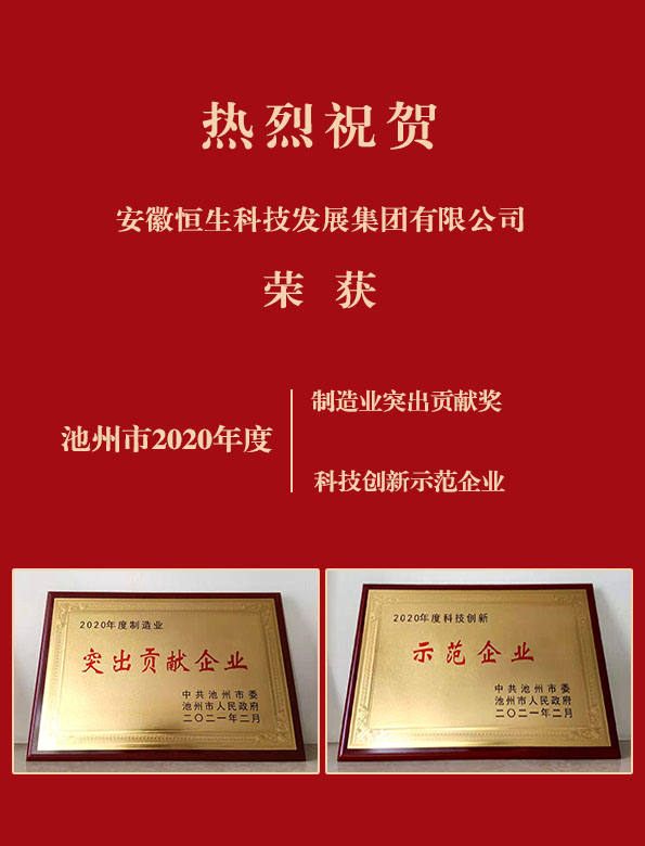 熱烈祝賀安徽恒生科技集團(tuán)榮獲池州市2020年度"制造業(yè)突出貢獻(xiàn)獎"、"科技創(chuàng)新示范企業(yè)"。
