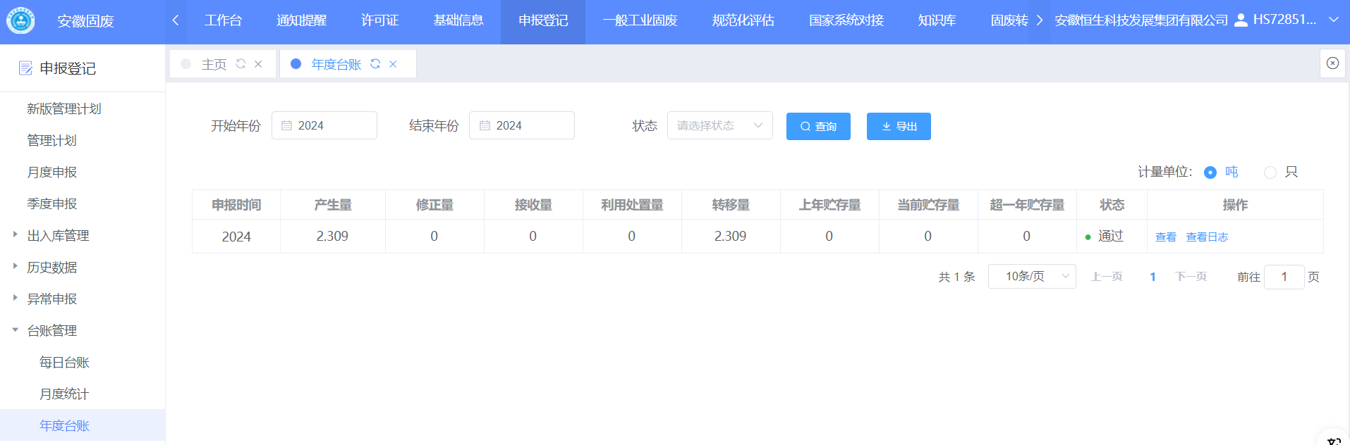2024年安徽恒生科技發(fā)展集團(tuán)有限公司 危險(xiǎn)廢物產(chǎn)生概況