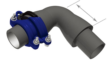 適用于球墨鑄鐵管承口三通、承口彎頭等部位的搶修。因空間有限,普通承插修補(bǔ)器放不下而無法搶修的情況下使用。